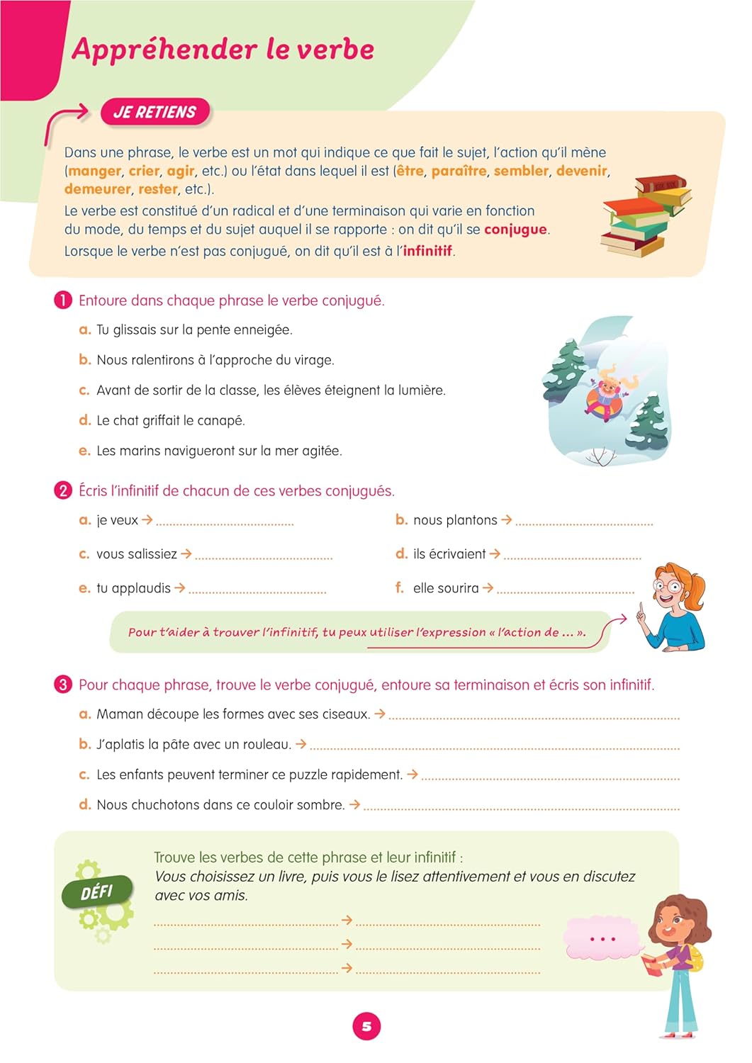 Un cahier d’exercice à destination des enfants de CM1 pour apprendre à conjuguer au présent, à l'imparfait, au futur, au passé composé, au plus-que-parfait et ne plus jamais se tromper !